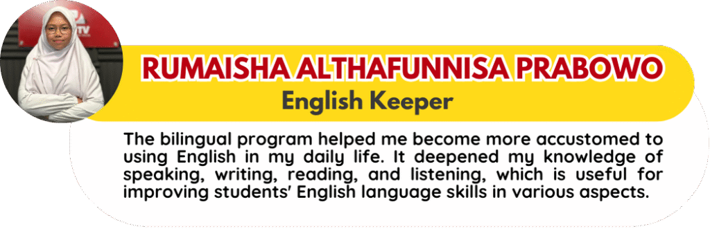 Dengan program ini diharapkan siswa/siswi memiliki karakter Kreatif, Inovatif, Disiplin, Ibadah Sohihah dan Mandiri dengan melakukan pembiasaan praktek baik seperti berwudhu sebelum beraktifitas, Sholat Dhuha, Dzuhur Dan Ashar berjama’ah, Asmaul Husna, Al Matsurat, Tadarus Al-Quran Setiap Hari, Tahsin Dan Tilawah Al Qur’an, Halaqoh Kelas, Latihan Kultum, Gerakan Literasi, Enterprenuer, Budaya Disiplin, Bersih, Rapih Dan Sopan, Pengembangan Iman Dan Taqwa ( PITA).